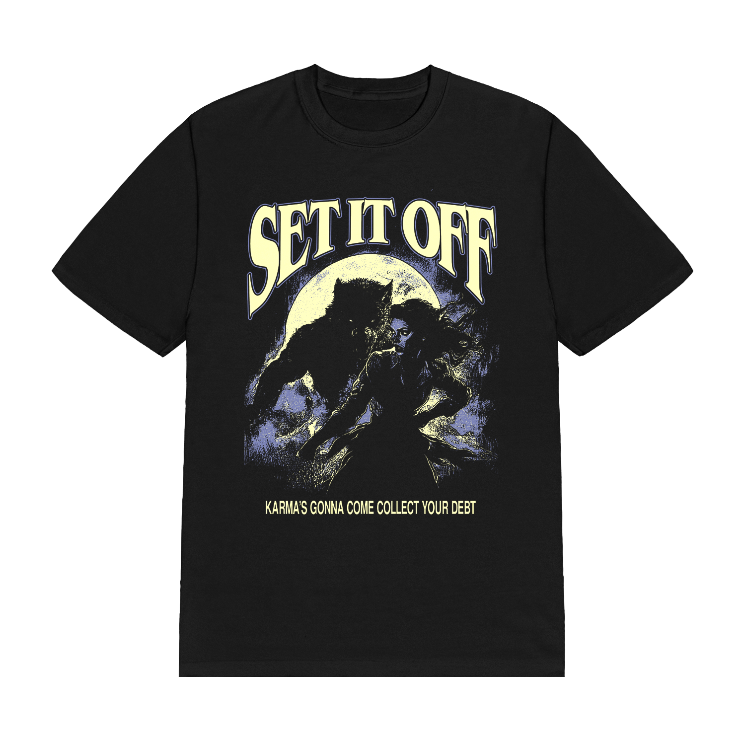 Official Set It Off Merchandise. Screen printed on a black 100% Cotton t-shirt with a relaxed fit.